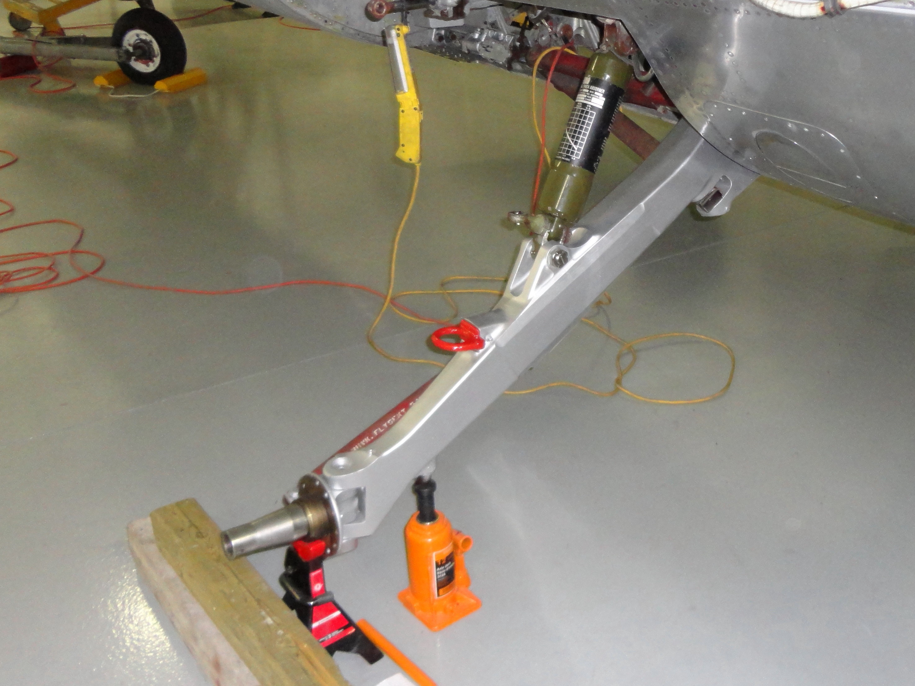 We are on schedule with the nose gear restoration. The oleo has been checked and it is working properly. This is not the original oleo strut that was on 703 when we received the aircraft as that particular nose gear strut was U/S and not possible to restore at all. We did get another nose gear strut and oleo with the aircraft that was able to be made serviceable. It requires only servicing with oil and nitrogen and a little paint to be made ready to install on the aircraft.