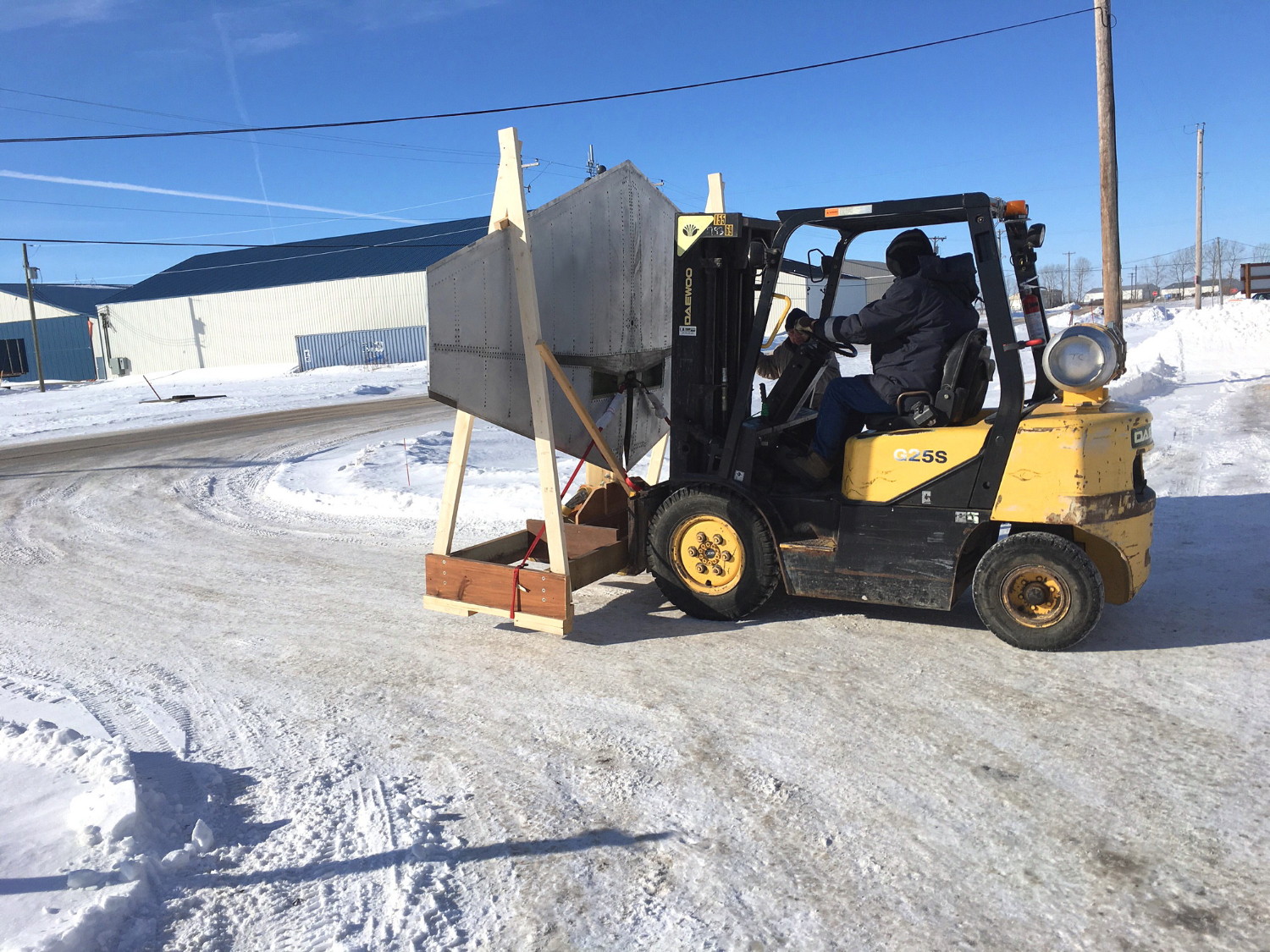 It is now our job to have the customs broker in Canada arrange the import with Canada Customs at the border port of entry once we have copies of the US State Dept. authorization papers. We also will now secure a boom truck to lift the aircraft off the flatbed safely. There will be volunteers on hand to help move all the many parts that will come with the main fuselage and we have acquired the use of a forklift to aid our efforts.