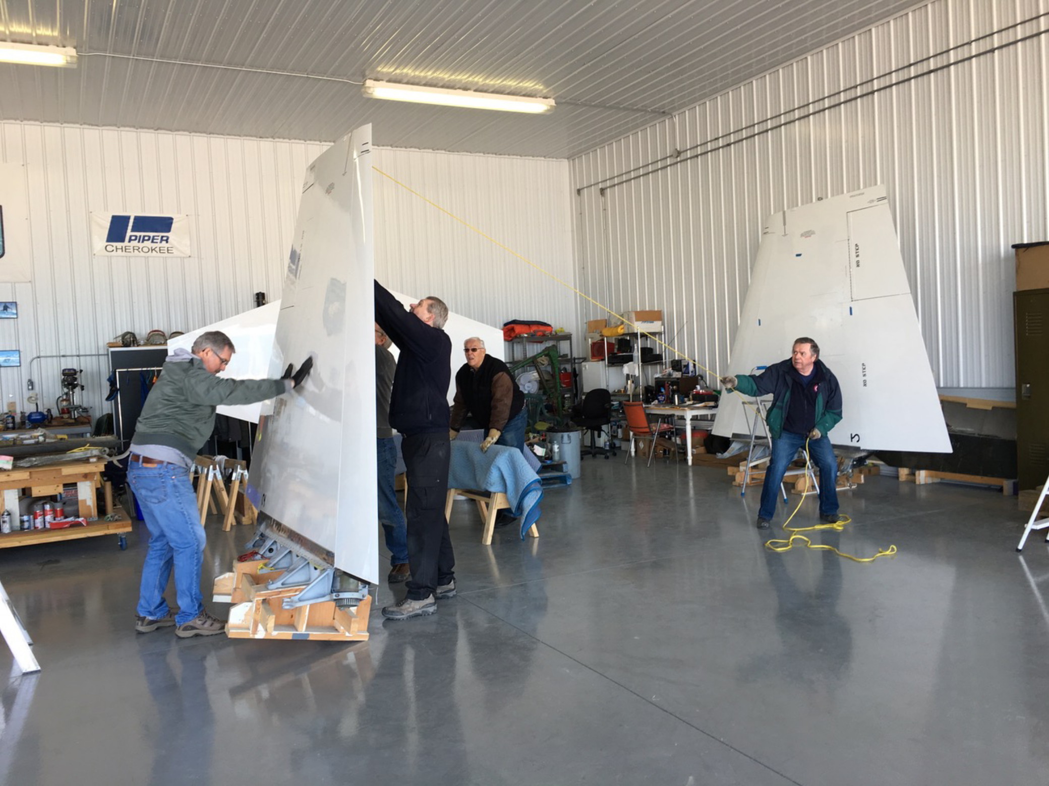 The restoration has been underway for a few months now. We first needed to inventory our parts and wash and degrease the aircraft before we could start work. Stands were made to get the wings and tail section off the hangar floor and neatly put away until the time comes to start work on them.